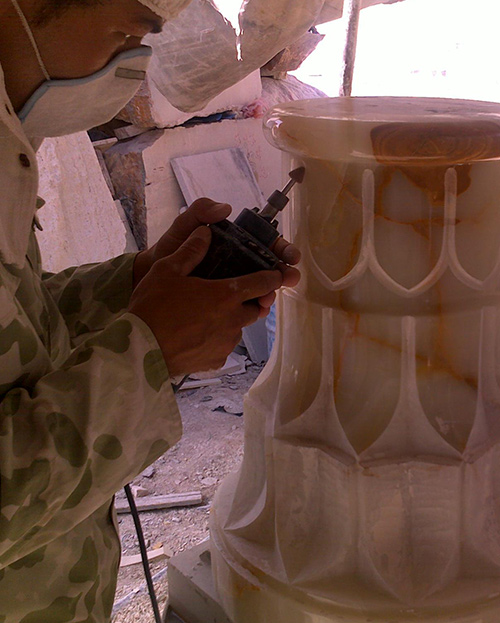 Iranmarmar was proud to be the supplier and installer of onyx columns for the shrine of Imam Ali in Najaf, Iraq. The porch consist of 96 hand crafted columns which are installed on 24 cube-shaped stone bases.